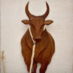 The centerpiece features a hand‑carved kalai (bull), emerging in bold relief against a textured backdrop, symbolizing valor and tradition from the iconic Jallikattu festival. The natural teak grain enriches the artwork with warmth and durability, ensuring timeless appeal and long‑lasting quality