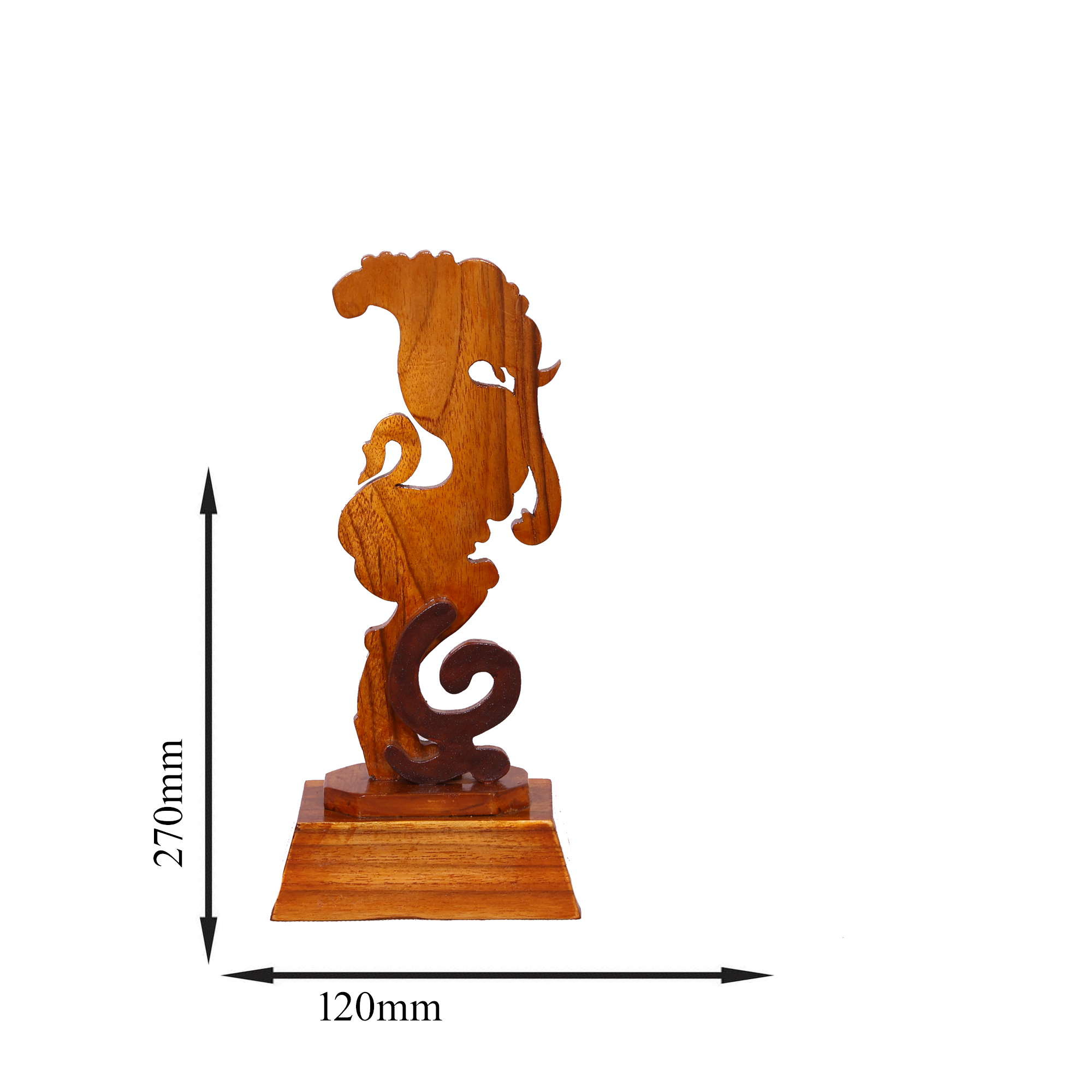 Handcrafted wooden Yazhi sculpture inspired by Tamil temple guardians. A timeless symbol of strength and protection, polished to highlight natural grain and soulful artistry